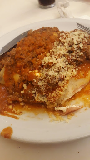 Tremenda comidaaaa, sigo con dolor de panza de lo mucho que comí 🥴❤️ Primero coronamos con los porotos y las rodajas de pan al horno con aceite de oliva. Después en mi caso me pedí los canelones de ricota, jamón y nuez con salsa bolognesa: 10/10 la salsa un manjar al primer bocado. No soy tan exquisita en pastas pero siempre el sabor es fundamental en lo que comes y estaba bárbaro. Mis viejos comieron matambre a la pizza con papas (buenísimas las papás naturales como salidas de casa) y bondiola de cerdo a la portuguesa con papas y batata al horno (menú del día). Más que riquísimo todo. El ambiente agradable con mucho espacio entre las mesas al menos en el horario que fuimos tipo 9 menos 20 (lo cual lo hace cómodo también). La atención de las chicas excelente, creo que nos atendió Mariana pero no pregunté su nombre. Muy paciente, servicial y simpática. Gastamos casi 40 mil y valió...