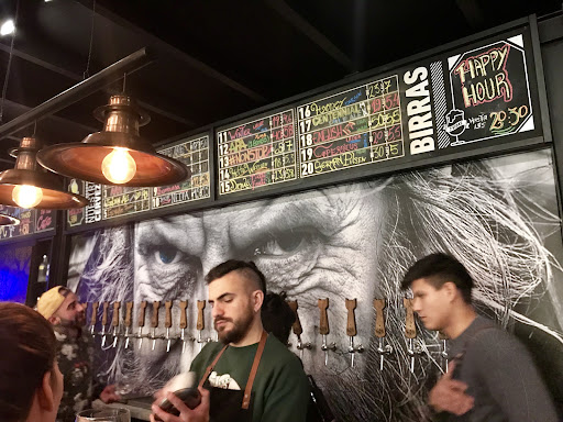 Read morePrimera vez que voy, de comer solo probé las papas casi sin cheddar y la promesa de panceta... No sé, 2 porciones y nada che... No sé que onda, son baratas ($220) pero no esperen gran cosa... Llegué después del happy hour así que me encontré con la hermosa novedad que por unos aproximados 300cc de cerveza (si está llena hasta el tope y contando la espuma) te cobran $150. Y no importa que estilo de cerveza pidas te la sirven en las misma copa estilo "teku" y no es por hacerse de un estilo sino que es para no servirte mucho y no irse de mambo con el precio (una pinta en Recoleta en un bar mucho mejor vale $10 o $20 más y viene 500cc) o sea que te cobran lo que se cobra en todos lados en promedio pero te dan mucho menos contenido. Tiene la peor manera de servicio que existe en este rubro "self-service" tenés que ir a pagar tu cerveza a la caja, llevártela a la mesa. Y repetir el procedimiento si querés otra (podes pagar varias de una vez e ir directo a la barra) igualmente no ahorras tiempo porque tienen a 3 o 4 que sirven pero que boludean entre ellos y no te dan pelota, 5 minutos y bajan la mirada para no atenderte (fue mí amiga y para hacerse los gatos hasta le regalaron 2 birras, ahí si te atienden rápido) ni hablar que cero accesible, baño solo en el primer piso, música bastante alta que tenés que gritar con el de al lado y ni hablar de que te vas al baño y ya te están quitando el lugar, banqueta o mesa. Para lo único que si están atentos es para vaciarte la mesa, no la limpian, solo te hacen notar que tenés que seguir consumiendo. Horrible servicio, mucho por mejorar.. pero mucho en serio. El servicio de ir a pagar y buscar su propia bebida hace que se te vayan las ganas de consumir. De hecho me fui de ahí a otro lado porque esperar 15' para un vasito de cerveza es demasiado. Es un destrato...