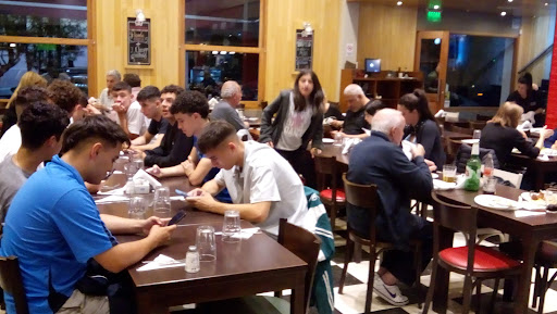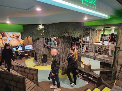 Read moreActualizo mi opinión porque fui varias veces más ahora que abrió la sala de juegos infantiles en el primer piso. Cuento primero de eso y después de la comida. La sala de juegos está muy linda, la mayoría de los juegos son de pantalla pero tienen un puentecito con rampa y tobogán muy lindo para jugar en grupito (mi nena va sola y se engancha con otros nenes allá), está decorado como bosque, hay una o dos chicas mirando a los nenes (ojo que no impiden que los nenes salgan del espacio de juegos). Lamentablemente tienen re pocas mesas arriba porque la mitad del salón está "en reparación" hace meses sin señales visibles de que requiera reparación ni de que estén realizando cambios. Podés sentarte en el salón de abajo si tus nenes son más o menos grandecitos y te animás a dejarlos. A tener en cuenta, el ruido arriba escala a niveles que requieren gritar para hablar. En resumen, el poder sentarte tranquilo mientras tus nenes juegan felices es el punto fuerte del local. Han mejorado la comida, creo. Anteriormente comí (o mejor dicho dejé) allí la peor hamburguesa que probé en mi vida y una bondiola que era más grasa que carne. Pero recientemente pedí las milanesas para 3/4 personas que la verdad que son muy ricas y enormes. Si llega caliente depende de qué tan desbordado esté el lugar. Anoche pedí una ensalada cesar que zafaba bastante, y al menos las hojas verdes habían sido lavadas, que es más que lo que puedo decir de la lechuga de la hamburguesa que pedí el año pasado. La pizza está bien. Con respecto a la atención, es correcta, aunque lamentablemente mandan a los mozos menos experimentados al puso de arriba, obviamente porque ninguno quiere trabajar ahí con el bullicio que hay, pero es el sector más difícil y se beneficiaría mucho de mozos con más cancha y especialmente de 1 mozo adicional para que la comida no quede enfriandose en la barra abajo hasta que el único mozo de arriba pueda ir a buscarla. En cuanto a precios, a julio 2023 la gaseosa o agua está 680, muy por encima de otros locales. Cubierto 300 para 3 pancitos sin mantel ni nada para untar. La comida sí está más normal: ensalada cesar grande 1800, pastas con salsa simple 2200, pollos 2100 aprox, mila napo con fritas para cuatro personas 6800. En resumen, sigo yendo porque me queda muy cerquita y mi nena ama jugar ahí. Para eso está bien. Sin chicos y dispuesto a trasladarse un poco más, no...