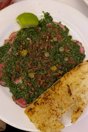 Although the appetizers were tasty, the carpaccio came under a bed of crunchy lardons or pork cracklings (Chicharrones) which were almost too hard to chew.