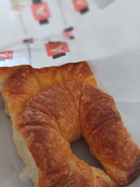 Compré take away, un café con leche, un sándwich de miga de pan negro crudo y queso que estaba ESPECTACULAR. Recién hecho. Hiper blandito, húmedo (creo que manteca), excelente el crudo... sobre todo abundante, no la tirita de jamón en el borde y nada en el centro. 2 medialunas de manteca rellenas con dulce se leche.... UNA DELICIA. Son todo lo que una medialuna de manteca tiene que ser: tierna, esponjosa, dulce pero no azucarada. Muchas veces las medialunas son blanditas porque las inundan en almíbar, entonces, no importa cuan dura o seca estaba antes... estas medialunas SON TIERNAS PORQUE SON TIERNAS, porque están bien hechas.