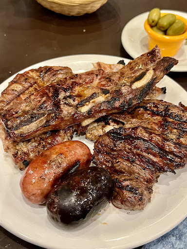 It seems like the perfect time to go is Thursday around 7:30 pm—when I arrived, the place was so empty I wasn’t sure if it was even open. People started trickling in a bit later, so I guess I was just early to the meat party. They charge about ARS $2000 for “table service,” but let’s be honest—it’s more like an emotional cover charge for the Argentine meat buffet. I ordered the parrilla for one, which is so massive it’s perfect if you enjoy playing flavor roulette. Some cuts were fantastic; others made me wonder if the cow had a rough week. You’ll definitely leave full, though. The service was as enthusiastic as a Monday morning, and the WiFi was more absent than the waiter’s will to serve—but hey, at least they accept contactless payments, which is ironic given the lack of...