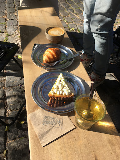Read moreExcelente café de especialidad en Colegiales. Ubicado en una zona re tranquila y con mesitas en la vereda donde te pega el solsito. Pedimos un Latte ($250) y un té en hebras ($220) ambas cosas riquisimas. La taza donde viene el café es hermosa y la presentacion tambien. Para comer pedimos una croissant y una porcion de la torta del dia ($400) que en este caso era una Key Lime Pie que estaba increible, una de las mejores tartas de lima que probe sin exagerar. Super suave y la masa era exquisita, deberian tenerla siempre a la venta. El local esta lindo, van muchas personas con sus perritos a sentarse a tomar algo. Las mesas parecen un poco bajitas pero estan bien. Es un lugar pensado para sentarse a tomar algo e irse, no es para quedarse charlando por horas. Llegamos a eso de las 10:20 y estaba todo liberado pero a los minutos comenzo a llegar gente. Super amables. Recomendadisimo! Y si esta la Key Lime Pie no duden en pedirla porque es de lo mejor que hay.