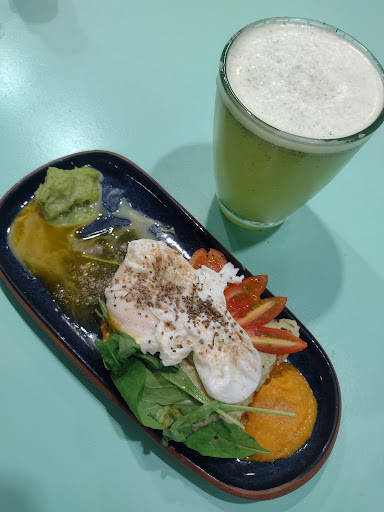 Read moreEl ambiente era bastante agradable, no habia calefacción pero no hacia frio, era un lugar pequeño, tenia una musicalización adecuada pero no muy agradable, se escuchaba los ruidos de la cocina, y algun que otro ruido de la calle, estaba lleno, habia bullicio, baja acustica. La estética del lugar tenia una corcondancia, tenia todo la misma onda industrial, mucha madera, metal y lo que mas llamaba la atención era un mural hermoso en una de sus paredes. Fui con mi pareja, los precios no eran impagables pero tampoco un regalo, el tamaño de las porciones era abundante, pedimos dos Flat White, una porción de budin de zanahoria y dos medialunas de grasa, como compensación por la demora nos regalaron un roll de canela, los café tenian notas amargas, muy fuertes, necesitaron mucha azucar para tomarlos, los acompañaron con un vasito de agua, la porción de budin estuvo exquisita, las medialunas no eran las mejores pero estaban ricas, y por último el roll de canela estaba exquisito también, muy chocolatoso. El servicio estuvo bastante agradable, nos atendieron como corresponde, mucho respeto y rapidez a la hora de...