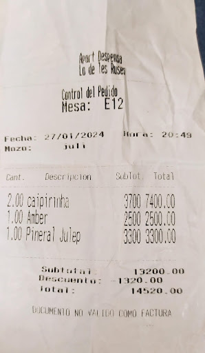 El 27 de Enero fui con un amigo a tomar algo. Arrancamos mal, tuvimos que esperar más de media hora para que nos traigan un par de caipirinhas, la atención es desastrosa. Después de las caipirinhas, pedimos unas bebidas más y al terminar pagué con mi tarjeta de crédito. Quizás por estar un poco entonado no me avivé en pedir que traigan el posnet a la mesa, se llevaron mi DNI y la tarjeta. Estuvieron como 5 MINUTOS con mi DNI y con mi tarjeta aproximadamente 10 MINUTOS O MÁS. A los 2 días de haber estado en el bar empezaron a hacer compras por internet con mi tarjeta, me gastaron aproximadamente $110.000 pesos en ropa y $20.000 en compras en un portal de venta de entradas. La tarjeta solo la uso para hacer compras pequeñas (comida rápida u ocasionalmente en algún súper, compras en las cuales rara vez te piden siquiera el DNI) razón por la cual estoy más que seguro que las compras las hizo algún empleado del bar. El martes fui a hablar con los dueños, primero hablé con quién se identificó como la madre del dueño, una señora rusa, nunca me dijo su nombre. Le comenté lo ocurrido y me dijo que fuera más tarde para hablar con el dueño: Sergio, que cuando lo ubiqué me di cuenta que en realidad se llama Sergey porque es el hijo de la señora y ambos son rusos. Antes de hablar con Sergey me dirigí a la comisaría 5ta de Almagro e hice la denuncia correspondiente. Luego de hacer la denuncia volví al bar para ver si encontraba a Sergey, el dueño. Lo encontré y tuvimos una charla muy amena, hablamos siempre en buenos términos aunque yo estaba muy caliente por lo ocurrido y no tuve ningún reparo en decirle que lamentaba informarle que está trabajando con ladrones. Le pregunté quién era "Juli", el mozo que aparece en el ticket (primera foto) y quien fue el que me atendió, pero me dijo que "los mozos se ingresan al sistema con cualquier usuario, así que pudo no haber sido él quien te atendió", me pareció un verso y al final nadie me quiso decir quién era "Juli". La conversación se dió adentro del bar a pasos de las cajas donde varios empleados se quedaron mirando como preocupados y con una actitud bastante sospechosa. Particularmente en una de las ocasiones que ingresé al bar, la empleada de la tercera foto, sacó su celular a escondidas y, pensando que no me di cuenta, me sacó una foto asomando su celular por arriba de la mesa del sector de cajas. Inmediatamente le comuniqué a Sergey que su empleada me había tomado una foto sin mi consentimiento pero no hizo absolutamente nada. Cómo no tengo nada que ocultar, yo saqué también mi celular y le tomé una foto a ella con el objetivo de subirla acá y advertirles a todos ustedes que están leyendo esta reseña la manera tan turbia en la que parecen manejarse en ese bar. Lo único que me supo decir Sergey al final de la conversación que tuvimos, es que el día que me robaron los datos de mi tarjeta, en la caja estaba una tal "Guada". CUIDEN SUS TARJETAS EN ESE BAR. Una lástima que gente tan educada tenga que dar la cara ante la justicia por tener empleados amigos...