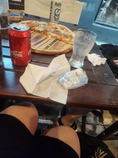 Servilletas... servilletas... ¿Habían? Sí, como 6 supongo. Cuatro mesas, dos con servilletas (6). Si hubieran brindado platos no hubiera sido tan grave, lástima que evidentemente platos no vimos ninguno. Después de que trajeran algunas otras pizzas, eventualmente las servilletas estaban completamente inutilizables, y tampoco podía usar las carilinas que tenía en mi campera porque, de vuelta, como no habían servilletas ya, mis manos estaban sucias.