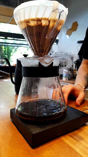 Fui por las buenas críticas y realmente esto es una cargada.. no entiendo por qué este lugar tiene esta puntuación. Se ve que comentan amigos de la gente de ahí, o gente que le regalan cafés. No lo sé. Pero el lugar realmente NO ES BUENO. Un robo y pérdida de dinero. La pastelería es comprada a terceros y se nota. El pan brioche seco y frío, la sfogliatella salada es mala, en el relleno se nota muchisimo que es comprada. Jamón barato y queso arricotado. El hojaldre deja mucho que desear. Las medialunas pequeñitas y compactas. Mal hechas. Viendo otros comentarios veo que han puesto que los asientos son incómodos, coincido. Deberían cambiar las sillas que dejan una muy mala posición para la espalda. También deberían poner otra música y cambiar la actitud en la atención. Me miraron mal y me apuraron para hacer el pedido. Pedí el café de la casa y no había. Deja mucho que desear. No vuelvo. Realmente no lo recomiendo para nada....