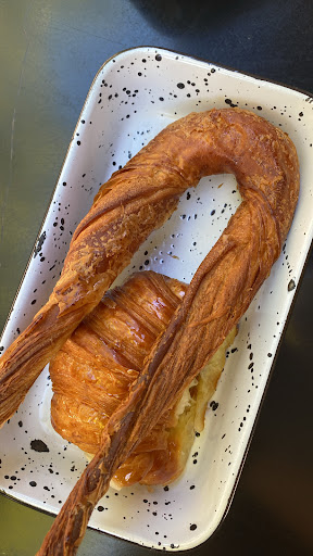 Fuimos el viernes a las 18hs pasadas con mi pareja. Mi primera impresión fue que el lugar era muy lindo la verdad lindo diseño, moderno un poco pretensiosos con la falta de espacio. Cuando fuimos no habían muchas cosas en mostrador estaba bastante pobre. Pedimos: un latte caramel, un chocolate caliente, una medialuna simple, dos medialunas rellenas una de ddleche y otra de pastelera.