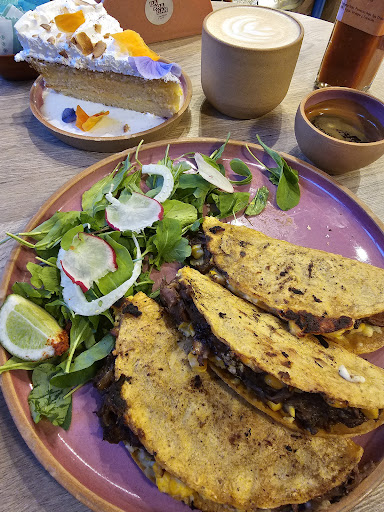 July 23rd (so the owner can know who's working this day): 2nd time at this place, a bit disappointing. Due to the cold weather, everyone wanted to be indoors. However, they don't have control over who's first in the line, so I saw some teenagers (who don't really respect social life at all) who have just arrived at the place sitting on the table we were waiting for 20 minutes. Total mess. The cashier was helpful and made a signal with her head, but no action was actually taken. So she knew things were wrong, but nothing was done. As for the food, I ordered quesadillas (2 units), and they had me 3 tacos. I ate one of them and asked 2 to-go cause waiting for an extra 30 minutes to get what I really ordered was just out of my plans. When I told the waiter it was the wrong dish (not expecting an exchange or so) just so he knows how messed up the service was, he come up with the brilliant idea of saying "this is the quesadilla"... whith no cheese at all? 3 units and not 2 instead? Really? This made me feel so disrespected that I can only affirm they will never see me again. Apart from that, its acoustic is terrible. Noisy place, pet friendly where pets are on the table and being touched by staff. I mean, really? My first time was nothing like that, so I definitely had my "first" and real impressions at my second (and last) time. It's so sad how an entrepreneur can trust their business in the hands of unprepared or untrained staff... and it was crowded, though. Of course, it's not made for those who want to have a nice and recurrent coffee place. It's made for a one-time visit only. Cause it's a total mess,...