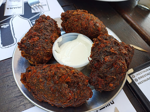 Read moreFuimos con mi novia un viernes a las 11pm aprox. Lindo lugar por dentro! Tipico bodegón, pero menos quilombo a la vista. Algo chico adentro capaz, pero nada de que quejarse. Afuera está lindo. Apenas nos sentamos nos trajeron unos pancitos, tostaditas, palitos y una salsa de ajo. Bastante fuerte la salsa de ajo, pero después nos trajeron otra (cuando pedimos rabas) y estaba excelente. Así que depende como se prepare. Si está fuerte se pide el cambio y 0 drama. De entrada unas rabas que estaban muy ricas y la salsa de ajo que mencioné antes. Después pedimos una bondiola BBQ y un matambre a la pizza. Ambos muy muy ricos y abundantes. El matambre a la pizza podrían comer dos agregando una guarnición. La bondiola con barbacoa y panceta se cortaba con cuchara, super tierno y de muy buen sabor. El matambre a la pizza no estaba para nada seco, bien jugoso y la salsa que le ponen le da un sabor unico. Buenos precios para las bebidas y la atención de Pablo 10 puntos. No fué ni poco atento ni el tipico que quiere forzarte la propina. Muy amable. Cuando pedimos la cuenta nos trajeron un "arbolito" de chupetines, nunca lo habia visto jajajaja. Es ideal para bajar la comida despues de lo lleno que quedas. Lo...