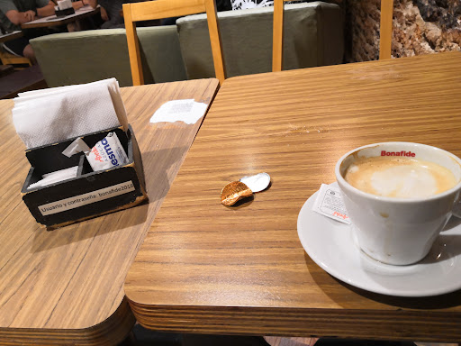 Read moreFernando, el dueño del local Bonafide en E.Castro y Carhue, me tocó el hombro, no se porqué si no lo conozco, y me pidió disculpas, se dio vuelta y se reunio nuevamente con sus amigos. Fui a tomar un café, me senté afuera porque estaba con mi perrita. Falta un ventilador en esa parte del local. Estaba tomando el café cuando veo salir de ADENTRO a un hombre con un perro. Hacia unos minutos atrás había consultado al mesero quien me informó que no se podía ingresar con animales, lo cual acepte respetuosamente, reglas de la casa. Termine mi café y le dije a Fernando, el dueño, que no me parecía respetuoso el manejo con los clientes, si ingresa un perro que ingresen todos, sino ninguno. En mis narices salió un perro nada chico del local. Claramente mi comentario mucho no le importó a Fernando quién me sonrió, se dio vuelta y volvió con sus amiguitos. No es para cualquiera tener un comercio. La suerte tiene fin, como todo en la vida. Que te dure Fernando o mejor dicho ojalá aprendas a comportarte con tus clientes; acordate que son quienes te dan de comer. Se muy bien distinguir cuando me burlan educadamente, como intentaste hacer y no te salió, porque estabas apurado por volver a la reunión. Yo era una de tus clientas y me sacaste de encima con tu sonrisa socarrona. El barrio está lleno de hermosos cafes, con buena atención y...