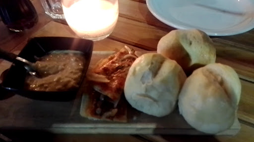 La atención fue excelente, lo cual siempre mejora la experiencia. Probamos una pizza mitad napolitana y mitad panceta con ciruela. La pizza estaba buena, pero tengo que mencionar un punto negativo: la panceta ya viene cocida y el sabor no me convenció del todo. Personalmente, creo que sería mejor que la panceta se coloque cruda y se cocine en el horno al momento. Así se realzan los sabores y se evita esa sensación extraña que deja la panceta precocinada.