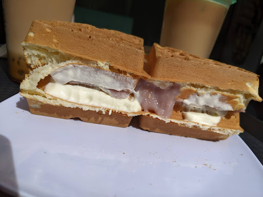 A mixture of mistakes and confused decisions leave me puzzled. What could have been a slam dunk, instagrammable, delicious indulgence is instead a waste of calories. At the end of our meal, the employees asked us if we enjoyed everything, and I didn't even have the heart to tell them how we felt about it, because no doubt it is not the fault of the employees but rather whoever had the bright idea to open up a waffle and boba shop without bothering to make either of the signature items palatable. My advice: try an actual matcha latte, leave your waffles warm, and don't skimp on the fillings and toppings. Until then, your matcha remains an insult to matcha lattes everywhere and your waffles remain oversized slices...
