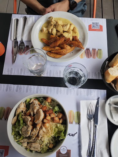 Read moreLo primero para destacar es que la preparación de la comida está bien lograda, bien presentada en porciones mesuradas o justas, hay buena calidad en la materia prima que usan pero no justifica los valores. Pedí salmón (mi pesca favorita) al vacío, pero no me pareció diferente la cocción o el sabor como prometía la carta. El acompañamiento (pure de papa) estuvo OK. Mi novio pidió lomo a la pimienta con mil hojas de papá, también ok sabor y cocción / preparación del plato, pero no tenía tanto sabor. En general ambos platos ricos pero no cumplieron la expectativa que teníamos. Si bien el lugar se sabe de toda la vida que es para bolsillos abultados, que me cobren casi 100 pesos por un porron de 330cm3 de cerveza Stella Noire me pareció un verdadero asalto con toda sinceridad y respeto a los dueños del local. Por el dinero que pagamos en la cena ni mi novio ni yo obtuvimos el sabor que esperábamos encontrar. Por otro lado las veces que fuimos a desayunar o merendar a lo largo de estos años jamás nos ha defraudado. Diría que volvería pero solo a tomar el café. La vista de la plaza y el lugar en si tienen una estética que me gusta mucho y los macarrons son muy buenos aunque la calidad bajó del primer momento que los probé (y en el que podías elegir que sabores...