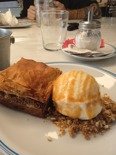 De postre, baklava rellena de pistacchios con helado de americana. Una cosa increíble. No me olvido más de esa baklava. Necesito ir a otros lugares a compararla porque si hay mejores, me declaro oficialmente fan de la baklava. Tienen que probarla porque es una de las cosas más exquisitas que van a encontrar en CABA.