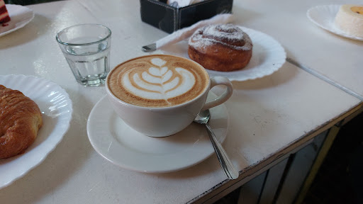 Comida: Todas mis amigas pidieron un pedazo de torta mientras que yo pedí la promoción de latte con croissant XL, además de un roll de manzana. El latte vino con un lindo latte art, pero eso es todo lo bueno que puedo decir al respecto. El sabor era... regular, como la mayoría de cafés que tomo en otras cafeterías, pero además estaba tibio. El croissant sabía viejo pero aún peor era el roll de manzana. Ese no era solo viejo, estaba increiblemente seco y de manzana no se le sentía nada. No lo recomiendo en absoluto, no valió la pena. Mis amigas tuvieron piedad en mi y me dejaron probar sus tortas, las cuales sabían bastante bien (aunque cabe destacar que la que pidió el cheesecake estaba triste de que no tenía decoración de hongos como en la foto, ups). Ellas dentro de todo disfrutaron sus pasteles.
