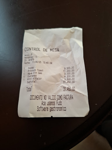 Pedí una sopa y un tostón con palta y huevo revuelto El lugar estaba vacío y es mini. 4 mesas para 2 personas La verdad es que estaba riquísimo, peeeero, dejo acá porqué no volvería nunca más (todo eso se lo dije al irme a la chiquita que me atendió)