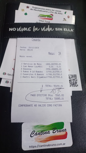 Las rabas sugeridas como entrada estaban increíbles. La masa que las recubría estaba muy rica y el punto de cocción era el indicado (no eran un chicle como suele suceder en algunos lugares). Estaban increíbles. Los "caseritos" que comió mi hija estaban bien - solo eso -, más o menos lo que esperaba. La salsa blanca estaba dentro de los parámetros de sabor y textura (quizá yo le hubiera puesto un poco de nuez moscada y la hubiera hecho un poquito más espesa). Probablemente tuve la vara muy alta. Nosotros pedimos "Pasta negra con gambas al ajillo". Seis camarones :-( Me pareció que la pasta podría haber tenido más tinta, para que no quedaran grises como estaban. El sabor era lo que esperaba. Debo decir estaban ricas, pero hubiera estado bueno un camarón más por persona. En lo personal, si volvemos, repetiría las rabas y probaría alguna otra cosa de la carta. Quizás un postre en vez del plato principal. Ah... y por otro lado: si pagás en efectivo hacen el 10% de descuento ( me deja pensando: ¿El VIA no es del 21% )