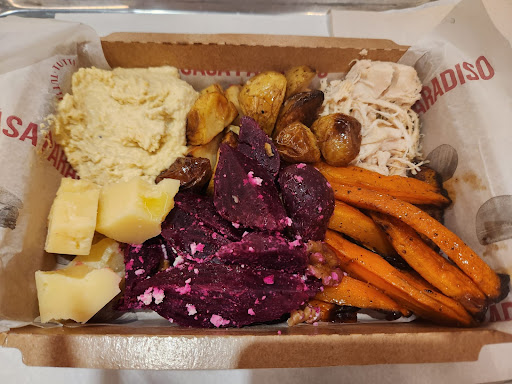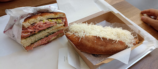 Read moreExcelente la calidad de la comida por los ingredientes que usan. Tienen distintos sectores con distinto tipo de comida: hamburguesas, pizzas, sandwiches, ensaladas, pastas, panadería, dulce. También hay un pequeño mercadito para comprar muchos de los insumos que usan que son importados mayormente (ej. tomates, mozzarella). Tengo dos grandes críticas y es que ningún sector tiene opción de menú infantil. A mi hijo le compramos una hamburguesa. No tenían ninguna simple con queso sólo por ejemplo. Tuvimos que comprar una que venía con varios ingredientes y pedir que sacaran todo y te la cobraban igual como completa. La porción obviamente es para un adulto y, como era una hamburguesa doble, obviamente dejó. Por otro lado, y no menos importantes, NO tienen opción de menú sin gluten. CELÍACOS ABSTENERSE porque dicen que no pueden asegurar que no haya contaminación cruzada. Yo soy intolerante al gluten, no celíaca, por lo que eso no me preocupaba pero sí buscaba opciones sin gluten. Lo que me ofrecieron es pollo con papas o ir al sector de ensaladas. Me comí una ensalada "personalizada" de 6 ingredientes que podés elegir (pero ojo que es una proteína y lo demás vegetales o hidratos). El precio es un poco elevado para una ensalada pero entiendo que lo que te cobran más que nada es la calidad de los ingredientes y opciones que ofrecen. Es decir, no era que había opciones tipo de salad bar común sino que había: pavita desmechada (pedí eso y estaba espectacular), hongos frescos salteados enteros, zanahorias glaseadas, papines, cous cous, zucchinis grillados, berenjenas, mozzarella fiori di latte, pedazos de queso parmesano, remolachas con ricotta y nueces pecan entre otros. No pueden irse sin dejar de probar los helados. Tienen una carta acotada pero son espectaculares. Nosotros pedimos pistacho, mascarpone y triple chocolate. El triple chocolate es LA GLORIA porque está hecho con variedades de los 3 mejores chocolates (uno era belga y los otros no recuerdo si peruano y colombiano). El mascarpone es como el Sin parar de frutilla de mi infancia pero nivel PREMIUM. El lugar es amplio y hay bastante lugar para sentarse: hay mesas altas, bajas y también un sector con mesas afuera. Para comer algo distinto no está mal. La verdad que hay opciones especiales y únicas que no se ven en otros lados. Es una opción original y distinta para un patio de comidas porque en definitiva es eso, un patio de comidas pero gourmet. Destacable que no sirven cubiertos de plástico sino biodegradables reciclables y las servilletas creo que también son hechas de papel reciclado porque...