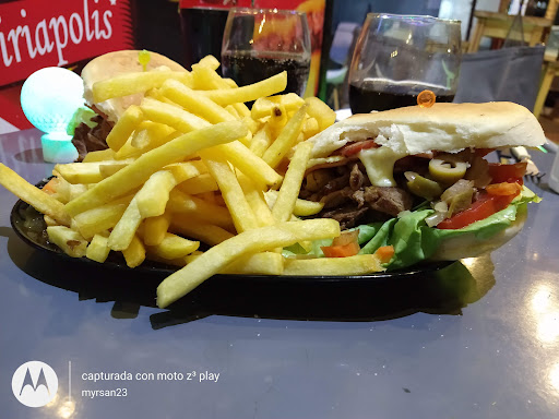 Read moreUn lugar donde hay chivitos uruguayos, y otros platos Completo para compartir, y bueno. Precio aceptable El chivito completo trae lechuga, tomate, cebolla, queso, huevo, panceta, pickles, aceitunas, no se puede dejar de probar esta comida, lo que si un poco simple la carne y no me gusta que venga en pequeños trozos la carne. Este sándwich viene acompañado con una buena porción de papas fritas, crujientes por fuera y suaves por dentro. La bebida la puedes pedir grande en botellas de litro y medio. Ambiente agradable y tranquilo. Atendido...