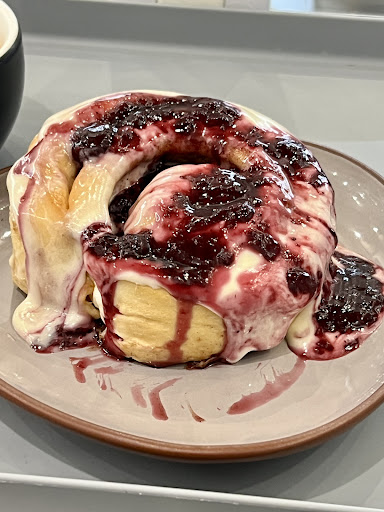 On a cold, rainy winter night when all hope seemed soaked and shivering, I saw the light… literally… the warm glow of Cinna Coffee and Roll calling me like a bakery-shaped lighthouse. I stumbled in, half-frozen, and was immediately met with the kind of friendly welcome usually reserved for people returning from war or bringing cake. The staff made me feel like I belonged despite looking like I’d just lost a battle with a broken umbrella. I ordered an Americano and a cinnamon roll with berry jam, because if I was going to emotionally eat… I was going to do it right.
