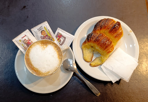 La atención buena pero tengo varias observaciones Tienen las medialunas sobre el mostrador sin protección/cubrimiento Entro un cliente se sirvio con las manos las media lunas en un plato Otro se acerco a pagar y charlar al lado, las medialunas estaban ahi entre las dos personas Me sente en un lugar para no molestar necesitaba leer para la facultad mientras esperaba, llego el mozo y apoyo una bandeja vacia en una de las mesas en la que yo estaba ocupando... Cabe destacar que no habia terminado de tomar mi cafe, me apure y me fui me senti incomoda...