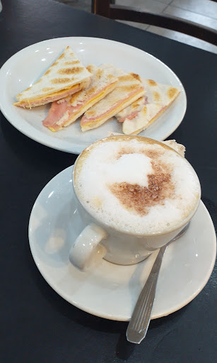 Read moreLa merienda muy rica. Tiene una opción de medio tostado, que para las mujeres viene bien, ya que la mayoría de las veces no comemos mucho. Buen lugar, pero podría mejorar. Por ejemplo el baño tiene un sistema de electricidad con sensor de movimiento creo, por que no hay un encendido. Entras y automáticamente se prende la luz, pero cuando te quedas un momento quieta se apaga la luz y te encontras en la oscuridad. El baño es uno sólo y chico. Pero no está tan mal. Los precios muy accesible. Sólo merendé. Pero al parecer tienen gran...