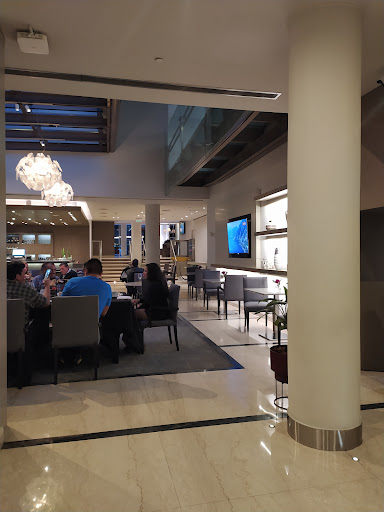 El ambiente es muy moderno y con buen gusto para la decoración y el techo es de vidrio x lo cual es un lugar con linda iluminación natural.