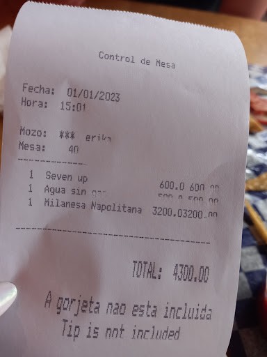 El lugar está bien ubicado. Fuimos el miércoles a la noche luego de la lluvia. La atención de los mozos es buena “la de algunos”, otro están en la suya o hablando entre ellos. La carta pintaba bien. Nos pedimos los tragos 2x1 x $6000 y estaban con poco alcohol. Luego, pedimos papas rancheras, poca panceta y algunas papas con gusto a viejo. La milanesa estaba pasable. Las papas abundantes pero lo mismo como viejas. Éramos 2 y pagamos $31600. Pero lo peor es cuando me dirijo a la caja y la chica cuando le pido la facturas A o ticket A porque lo pagaba con fondos de la empresa. Le cambio la cara. Se puso de mal humor. Trato de no hacérmela es ni ticket te dan solo el de MP y vuelvo a insistirle. Si hacemos pero hay que completar todos estos datos me dice, le digo bueno los completamos. Y me dice, “de mala manera dándome un papel” anótalos todos acá. Con una cara de “no sirvo para atender clientes”. Le dije: deja así, si no podes completar unos datos para que estas trabajen o de esto. 0 orientación de atención al público y sepan que ir a pagar debe ser una buena experiencia. Me lleve ese mal momento. DePues vino el mozo muy buena onda y me dice yo lo anoto. Y le digo: “deja, si no quiere trabajar no venta”....