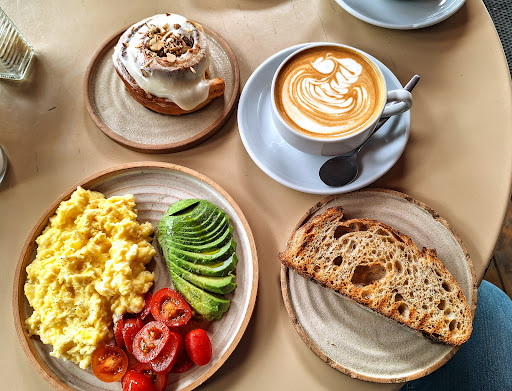 The food was absolutely delicious! The huevos revueltos were cooked to perfection—creamy and flavorful. The flat white was expertly prepared, showcasing their attention to quality coffee, and the cinnamon rolls were a delightful treat—soft, fresh, and just the right balance of sweetness.