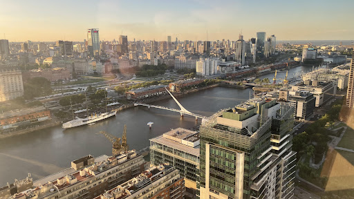 The Crystal Bar, located on the 32nd floor of the Alvear Icon Hotel in Puerto Madero, Buenos Aires, is known for offering a unique experience that combines stunning panoramic views with a high-quality gastronomic proposal. With a contemporary design that mixes tobacco and gold tones, the Crystal Bar creates a sophisticated and welcoming atmosphere. The large central bar stands out, surrounded by tables and private living rooms that invite you to enjoy special moments. The views from this level allow you to appreciate the Ecological Reserve, the river and the city, making it an ideal place for relaxed sunsets and vibrant nights. The bar offers a menu of original cocktails, prepared by expert bartenders who combine flavors, aromas and colors in a precise way. In addition, the gastronomic proposal includes snacks designed to pair perfectly with the drinks, ensuring a complete experience for the senses. In my personal case, we ordered a burrata pizza with Portobello mushrooms, seasoned with touches of basil pesto, truly incredible and delicious; a Crystal burger, accompanied by fries and for dessert a Hazelnut Delice - a similar egg filled with hazelnut paste, mango and citrus center, with Nutella and hazelnut crunch - something special; all accompanied by a Caipirinha, a Margarita and a passion fruit, orange and ginger juice - all highly recommended drinks. To highlight the quality of the service and personalized attention, the unbeatable views of Buenos Aires; in short, if you are looking for a place in Buenos Aires that combines spectacular views, an elegant setting and a quality gastronomic offer, the Crystal Bar at the Alvear Icon Hotel is the recommended option and with prices according to the place. A perfect place for outings with friends, after offices or romantic encounters, all accompanied by...