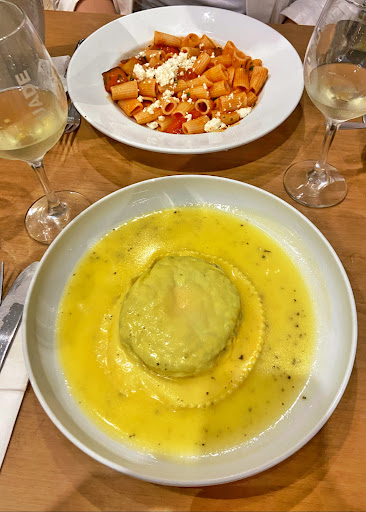 Estuvimos el viernes por la noche. Cuando llegamos nos avisaron que había una demora de una hora aproximadamente y eso fue lo que esperamos. Mientras esperamos nos ofrecieron un Aperol con vino blanco y más tarde una bocado de jamón y queso, muy ricos. La chica que toma las reservas muy simpática y amable, pero tuvimos el siguiente inconveniente. Diez minutos antes de ingresar, preguntamos en que orden estábamos en la lista y nos dijo "Gustavo, y luego Ustedes". Llamó a Gustavo y luego a Carlos. Cuando le hicimos el reclamo nos dijo que se había confundido, y luego cuando nos llamó para entrar nos dijo que se equivocó y nos había saltado. A mi me quedó la sensación de que la "confusión" fue a propósito. Por qué?? porque nos sentaron en una mesa en lo que llaman patio (frío, sin ningún tipo de ambientación), que básicamente era una mesa plegable de balcón o sombrilla en la playa que es inadmisible en un restaurant de cinco mil pesos el cubierto. Y prefirió sentarnos a nosotros antes que al matrimonio mayor. En cuanto a la atención del mozo, impecable (creo que se llamaba Fernando). Muy atento, cálido y respondió a todas nuestras dudas. La comida, todo lo que comimos estaba rico. Bruschetta napolitana muy sabrosa, de entrada. De principales, Maccheroni Vegani. Mis ravioles genovesi rellenos de carne de res, seso, mollejas, escarola y acelga eran unos muy buenos ravioles caseros, pero no se distinguían los sabores del relleno y el filetto rico pero nada del otro mundo. Lo que si me pareció delicioso y diferente era la focaccia que traen de entrada. Sublime. Los postres Spumoni de chocolate y panacotta de pistacchio muy ricos y pequeños. Conclusión: el patio y la mesa donde nos sentaron, inadmisibles para un restaurant de este nivel. La atención muy buena, pero no fue correcto lo que pasó con el ingreso. La comida muy rica, sin ser una "experiencia inolvidable". Pagamos algo más de diez mil pesos, para dos personas. Lo bueno es que la carta que publican en la web es real y con precios como para poder evaluar antes de ir. Creo que si cobrasen un 30% menos, estaría muy bien pago. NO VALE...