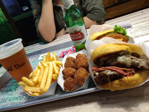 Read moreExpensive for what's offered. Hamburgers don't have the tasty feel of a home made one like other places. Crispy onions in here are breaded cubes filled with an onion paste and cheddar, and feel like arteries blockers. Still way better than any McD or lookalikes. Beer selection was poor: Patagonia for draft beer; Stella Artoir and Quimes for bottled. Place looks clean. Service is fast food speed. Not bad but not good either. I could come back here and still have the...