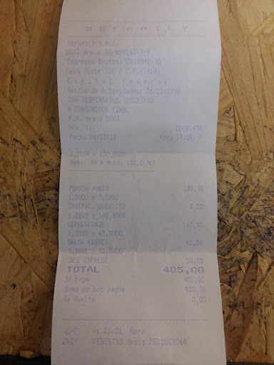 Read moreAntes de concurrir, ante una reseña que indicaba que sólo manejaban efectivo, se llamó. El dueño dijo que obvio que aceptaban débito y que "la gente escribe cualquier cosa". Pregunté si había ñoquis, sí. Cuando llegamos, le faltaba una de las tres variedades de ñoquis. OK. Al momento de pagar, nos dice que las promociones son sólo en efectivo. Además de ser ilegal, porque es obligatorio aceptar débito, la conclusión es que la gente "no escribe cualquier cosa". Los ñoquis de papa estaban muy buenos. No así los de calabaza, que estaban pegoteados. De verdura, no tenían...