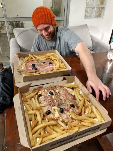 And the food was excellent: we ordered a pizzanesa (a pizza and milanesa hybrid) that was incredible, the portion was gigantic (it had six portions, we ate two each and took two home) and it tasted amazing. Nothing complex or refined, just good, hearty...
