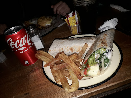 Bueno, me encantó. Pedí un wrap vegetariano (tortilla de trigo, mix de verdes, morrones, cebolla morada, portobellos, zanahoria, mozzarella vegana, alioli, pesto de albahaca) que estaba increíble, posta muy rico. En una parte tenía algo un poco picante que no llego a darme cuenta qué era pero igual ten points. Ah si, vino con papas fritas. Trabajan linea coca-cola y el menú completo y actualizado con precios está en el link de su perfil de instagram: @docbrown.ba. Muy buena atención y el lugar tiene onda. Mesas en la vereda, adentro y terraza con calefacción. Opciones vegetarianas, veganas y sin t.a.c.c.