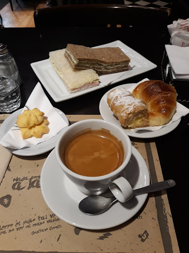 Read moreDos Escudos is both a cafe and a pastry shop. This review is about the bakery and pastry shop, which is our favorite "high end" patisserie in Buenos Aires. High end because it is more expensive than most, but not by much, and especially because the quality of the confectionery is just outstanding, both in terms of ingredients and preparation. The raspberry cake with chantilly cream is absolutely to die for and the Sandwiches de miga are second to none. The store is most often packed (always a good sign) but you take a number so there is no need to stand in line and wait for your turn in a crowd. Service is very attentive and the old ambience of the place adds to the charme. If you want to bring a cake to a dinner, they also come...