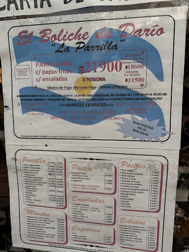 Read moreMuy buen lugar para ir a comer. Las veces que fui pedi parrilla libre y se come muy bien a muy buen precio (en abril 224 estaba 11500 y ahora en julio 2024, 14500, por persona). La carne sale muy tierna. Recomiendo pedirla jugosa o a punto, sino la sacan muy cocida, pero eso queda a gusto de cada quien. La parrilla libre es: entrada con una emanada frita de carne, provoleta, chorizo, morcilla y achuras. Y los cortes de carne son: tira de asado, vacio, bife de chorizo, bondiola, pechito de cerdo y pollo. La bebida y el postre se pagan aparte. Los platos individuales no los he pedido, aunque si los he visto y son muy generosas las porciones. Super recomendable para ir en familia o grupo de amigos, especialmente si piden parrilla libre. La atencion es muy buena, pasan a cada rato preguntando si quieren algo mas o si quieren esperar un rato para seguir comiendo (no apuran a la gente en absoluto, sino todo lo contrario), se puede salir a fumar a la vereda y volver a entrar, etc. Tema postres, las mejores opciones que puedo sugerir son el flan mixto (es una copa enorme) o el mousse de chocolate (que viene bañado en salsa de chocolate con frutos secos). Los unicos puntos negativos que tendría para opinar es que adentro suele haber mucho humo, no se si sea que hay algun problema con el tiraje de la parrilla, problemas por el clima que hace muy denso el aire y no ventila bien, o qué. Y el otro es que tenia un patio abierto en la parte de atras muy lindo, para disfrutar en epocas de calorcito. Actualmente esta cerrado, calculo que deben estar refaccionándolo por los materiales que vi, aparte de la epoca invernal que estamos. Por ultimo, la mejor recomendacion que les puedo dar es que pidan una reserva con tiempo porque se llena rapido. Y si no hicieron reserva vayan apenas abran para conseguir lugar, que a partir de las 9 seguro van a tener que esperar a que se vayan...