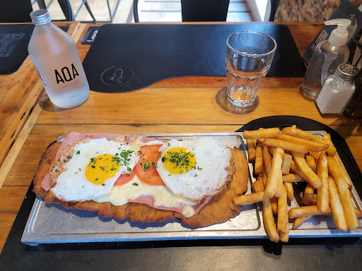 Read moreHace rato que vengo siguiendo las reseñas de este lugar. Me queda cerca del trabajo, al principio lei algunas reseñas que se quejaban de la organización, asi que recién hoy les di una oportunidad. El lugar es agradable, una linda esquina, bien decorada, con plantas colgantes, mesas bastante espaciadas. La atención de las mozas es buena, están atentas a cualquier necesidad, como se espera. La comida bien, comí la milanesa de la casa y estaba correcta, un poco en exceso cocida para mi gusto, pero bien, las papas fritas bien. Un detalle podría haber tirado la experiencia por la borda, pero fue al revés. Como la milanesa traía huevos fritos, le pedí a la moza algo de pan, mientras yo esperaba para no romper las yemas. Tras más de 10 minutos de espera ya me habia dado por vencido, pensé, se olvidó. Como a los 12 minutos me trajo una flautita que parecía recíen salida del horno y un dip muy rico, fresco y algo picantito. Y obviamente pude mojar el pan en la yema. Estaría bueno que la panera la pongan de entrada, como sugerencia. De postre flan con crema y corazón de DDL muy rico! En general muy buena opción...