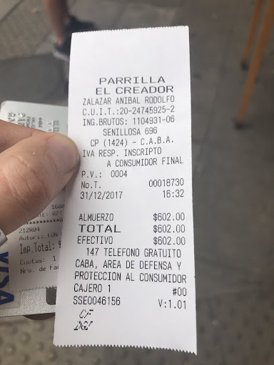 Read moreJust a traditional BBQ in Buenos Aires. Not cheap probably due to the location, my boyfriend had vacio with fries and I just had a lettuce, tomato and carrot salad because they didn't have avocado or corn (corn was in the menu), a water and a diet coke - see bill attached. The plates were dirty and the waitress wasn't very kind. I wouldn't come again, it...