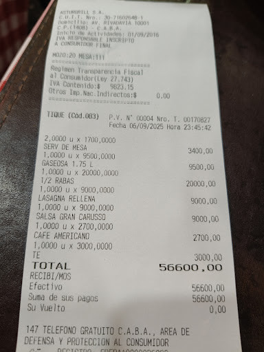 Read moreJsjaj esto es insólito,de entrada una atención del tuje,te da la carta que una gaseosa de 200 pesos vale 1000,una milanesa individual 5 lucas ,muzzas de 2 lucas que es una prepizza con 100g de muzzarela sin cortar,horribles intalaciones de la decada 60° como si fuera un lugar cajetilla,con un montón de guita invertida,toda la vida fue el lugar mas barato o decente de comer coherente en todo el barrio,esto no es precio actualizado con la inflación,esto es un robo,un abuso que lo permite la gente que sigue comprando ahi,miles de pizzerías muchos mejores que ofrecen fugazzetas rellenas a precio de esta muzza de prepizza,un lugar sin climatización con un calor de la cocina, malísima atención sin ganas todo el personal contestando de mala voluntad,el baño un desastre,todo sucio,viejo,infuncional,solo la puertas de ridadavis funciona,la otra se cae si la abris,todo un desastre,es una cantina de posilga,con la guita que te gastas aca comes dos veces en cualquier restaurante cajetilla o te vas a cañuelas, increíble esto. La peor experiencia de mi vida,comer dos personas una comida de cuarta 12.740$ Vas al bodegón "el antojo" y comes con 4 personas con la mitad,sigo indignado,el peor lugar de capital federal Asturias la pizzería que compiten palo y palo con pizza rica de mataderos,por favor. Cambien muchachos, si fueran coherente los precios perfecto,pero si no quieren bajar los precios, moderniza un poco ...