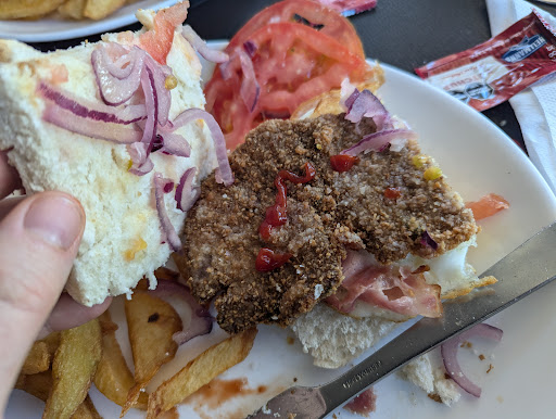 Siempre había ido a tomar café, en eso está bien. Hoy fui a almorzar: un fracaso absoluto. 1- la carta no es clara, y si escaneás el QR te manda a un sitio q hay q registrarse para verla. Finalmente trajeron una con precios. 2- pedí una milanesa, y la trajeron en sandwich (en la carta NO aclara q es en sandwich), 3- lo peor es q el tamaño de la milanesa era ínfimo (adjunto foto de 1/2 milanesa), cuando pregunté sino podía ser al plato, me dijeron q es exactamente igual, sin pan. Pedimos tb un Wrap de bondiola que tenía muy poco gusto. Para cobrarte 11lucas solo un sándwich, podrían brindar algo de mejor calidad, una pena.