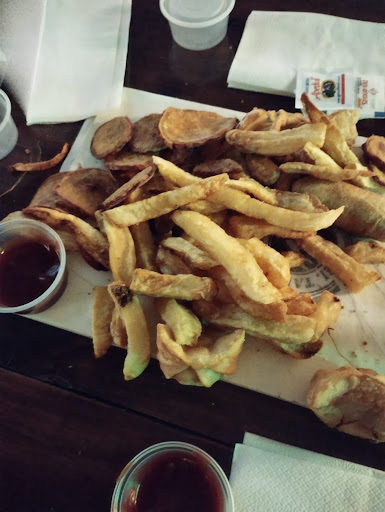 La primera vez que fui, cómo no tenía experiencia en cervecerias, pidieron comida por mi. Pollo frito, bocaditos. Un asco. Crudo. Por eso está vez pedí solo papas.