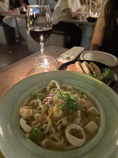 What we ordered : seafood udon and chorizo. The was lacking in any Japanese flavor: no soy, no mirin, no kombu, dashi etc. it was more of an Italian cioppino without the tomato base.