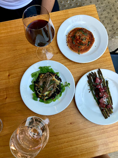 La onda es relajada, simple, bueno para venir con amigos, cita o incluso solo. Amplisima variedad de vinos con personal que sabe y ayuda a la elección. Siendo un bar de vinos, está buenisimo que den agua de cortesía. Tomamos unas copas de vino rosado y tinto robusto, ambos muy ricos (podría ser un poco más la medida en la copa, por el precio y por comparación con otros bares similares). La atención fue cordial. En cuanto a las entradas: -Provoleta 4,5/5: estaba buenísima, buen sabor del tomate y crujiente el queso, pero le faltaba algún verde (más allá del pesto, que acompañe) -Portobello relleno 5/5: la mejor entrada que probamos, bien rellenos, sabrosos y original la mezcla de sabores. -Esparragos 3,5/5: muy salados, no tenian los garbanzos que dice la carta, y eran muy flaquitos, podrían ser más carnosos. Era poca la porción.