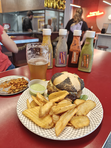 So what at first glance seems to be yet another burger&beer place in BA, resulted in a very mature proposal from this team. Firstly, the place is focused in both burger/other treats as well as drinks for the happy-hour/after-office seekers. Meals are fairly priced (about ARS 230 for a burger and craft beer pint) with a wide variety of combinations (you can find LAMB here, no one else around sells lamb burgers). Plus they go full vegan and full gluten-free, so you can come over with literally every one. We found a vast number of finger licking sauces they made onsite. Every burger is double. On the drink side, they offer a very well thought refill service for a fare lower than that of the respective drink, so you can extend your visit as long as you want. Best advice? come...