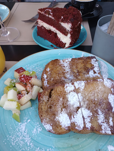 Un lugarcito súper pintoresco en una zona tranquila de caballito, tienen una buena carta para merienda y brunch, una variedad excelente de café. Fui el domingo a eso de las 3 de la tarde con la idea de pedir el brunch, que así fue. Un brunch pensado para 2 personas y con una buena variedad de platos dulces. Incluía 2 cafés, una porción de torta, un croissant con jamón y queso, un bowl de yogurt con granola y frutas, unas tostadas francesas, huevos revueltos y 2 aperols (se pueden cambiar por jugo de naranja). En cuanto a la comida se nota que todo era fresco y hecho en el momento y las bebidas el jugo de naranja era realmente exprimido, muy rico, y el café estaba delicioso. Porción de torta pedimos la red velvet que estaba muy muy rica y la porción era grande. El lugar estaba lleno así que el brunch tardó unos 40 minutos en salir, es bastante pero al ser un horario concurrido y una cantidad de comida considerable es entendible el tiempo, había otros pedidos más chicos saliendo más rápido.