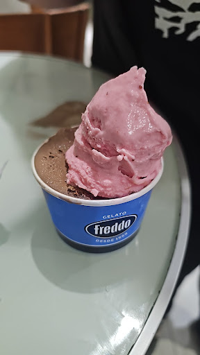 Read moreAyer sábado 28 de Noviembre, 23 grados, una tarde hermosa, lógicamente la heladeria llena de gente. Solo 3 empleados para cobrar, servir helado, lavar, hacer cafe, levantar mesas. Un DESASTRE!!! Había uno que te cobraraba y luego te servia el helado, obvio que tocaba el cucurucho luego de haber tocado dinero SIN lavarse las manos. El mismo, luego de servir el helado, iba y te hacia el cafe, el cual servia en un pocillo que agarraba de una pila de platos y pocillos sucios dentro de una bacha. Lo agarro, lo mojo y sin lavarlo sirvió el cafe. Nunca antes había presenciado una mamarracheada de ese calibre. UNA DESIDIA COMPLETA!!! Y para rematar el baño ademas de ser una mugre, estaba COMPLETAMENTE INUNDADO. Entonces, si te gusta el helado industrial, esperar muchísimo a que te atiendan, que te sirvan cafe en un pocillo sin lavar y chapotear un rato en un baño inundado no dejes de pasar por el Freddo de libertador y...