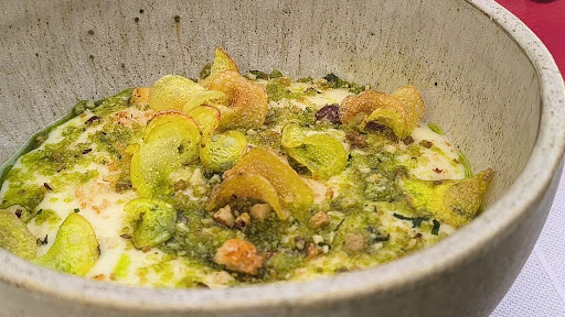 The service was frankly weird: the staffer who was supposed to be taking me to my table instead took me to nowhere - to the back door (onto the patio), where the tables close by were already occupied. She seems not to grasped the concept that her job was walk the customer from A (the entrance) to B (their actual table): she expected me to find my own way. Just weird. She really didn't know what she was doing. Another staffer, who took my order, was equally, well, bizarre: I ordered the white garlic gazpacho, to be followed by another starter (the cauliflower). But she said that this would be problematic: but she couldn't articulate why - she merely asked me was I sure, because the 'white garlic gazpacho' had, um, garlic in it. I said that yes, I had noticed that 'garlic' was in the name of the dish, and therefore I ordered it, obviously, knowing that it had garlic in it. For some bizarre reason, she made a huge fuss about the garlic, and I have absolutely no idea why. She seemed to think that this dish having garlic in it would be a problem - as though she assumed that I did not know what garlic is????? Just bizarre. She made a big issue out of (for goodness sake!!!) garlic, even though I didn't even mention it other than ordering the damn dish!! Weird. This 'service' was just embarrassing, awkward and clumsy, and needlessly. It made me really uncomfortable.