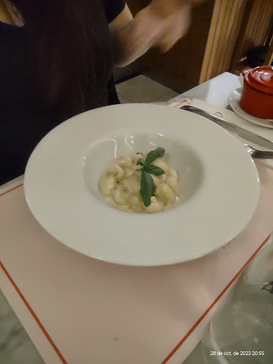 Read morePrimero hay que reservar, te ofrecen horarios, nosotros elegimos el de las 8y15 porque el de las 22 hs era muy tarde. Llegamos 10 minutos antes y no hubo problema, asumo que es porque era temprano para cenar y que en el segundo turno puede haber, lógicamente, demoras. Hay un estacionamiento a una cuadra que no es de ellos pero sellando el ticket es gratis por 2 horas. Los mozos increíbles, súper atentos y amables. El lugar es chico por eso es importante reservar, pero muy lindo. No se cobra cubierto. Éramos 4 mujeres, pedimos 2 antipasti, 3 entradas, 1 postre, 1 agua, 1 soda, 1 sprite y una cerveza y gastamos 41000 pesos, cosa que considero que está bien relación precio y calidad y para lo que es el lugar. Apenas llegamos nos dieron un amuse Bouche, muy rico, y focaccia ilimitada(riquísima, diría que una de las cosas más ricas). Los dos anti pasti era un queso ahumado con alcauciles y albahaca y tomate cherry y el otro unas crochette de parmegiani e Tartufo nero con salsa de tomate, si te gusta el parmegiano este es tu plato, la salsa estaba riquísima, de los dos me quedo con el queso ahumado. De principal pedimos tres porque algún plato se puede compartir y no somos de comer mucho, el mozo tuvo la amabilidad de separar uno de los platos en dos, pedimos los gnocchi della mamma con trufa, papardelle con osobuco y unos fideos al pesto genovés con chauchas, la porción de los papardelle era más que generosa en mí opinión, y los gnocchis fueron el mejor plato, el pesto estaba muy rico. Cabe destacar la rapidez con la que nos proporcionaban las entradas y el postre, naturalmente el plato principal se hizo esperar un poquito. De postre pedimos uno porque no dábamos más. El Tiramisú, infaltable y riquísimo, lo súper recomiendo.